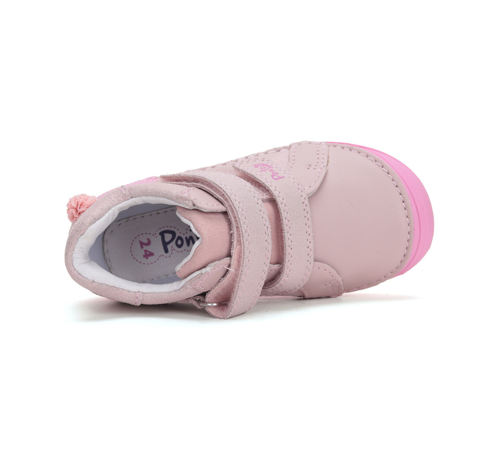 Ponte20 szupinált lány nyuszis zárt átmeneti cipő rózsaszín színben. Tépőzáras, talpbetéte kivehető, kívül-belül bőr. Vízlepergető. Elsősorban normál/széles lábfejhez ajánlott.