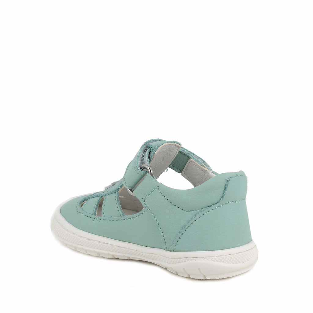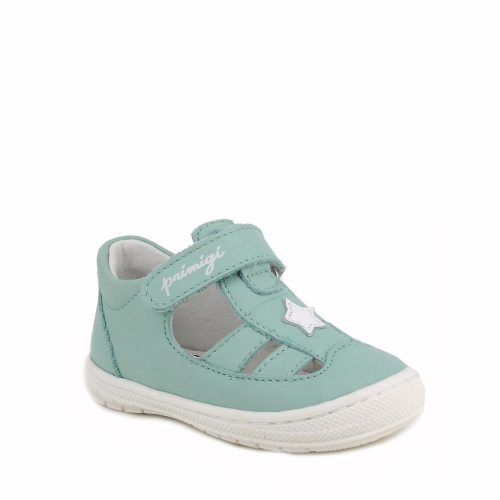 Primigi első lépés kislány szandál menta színben. Tépőzáras, a csatok, fűzőlyukak és az összes fémből készült rész nikkelmentes. A sarok zárt, párnázott, hogy maximális támaszt nyújtson a bokának. Pillekönnyű kivitel, rugalmas, csúszásmentes talp. Felső része és bélése puha valódi bőr. A kivehető bőr talpbetét optimális kényelmet és jó lélegzőképességet biztosít. Elsősorban normál/széles lábfejhez ajánlott.