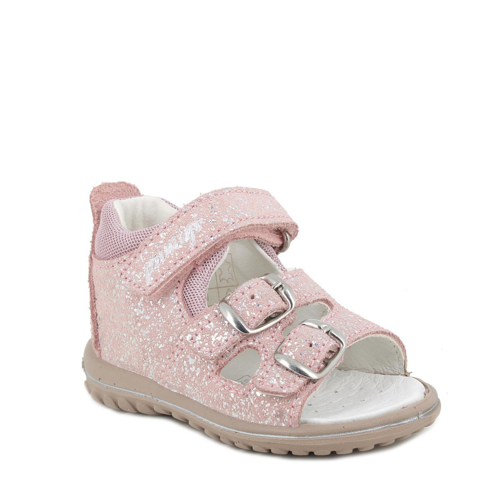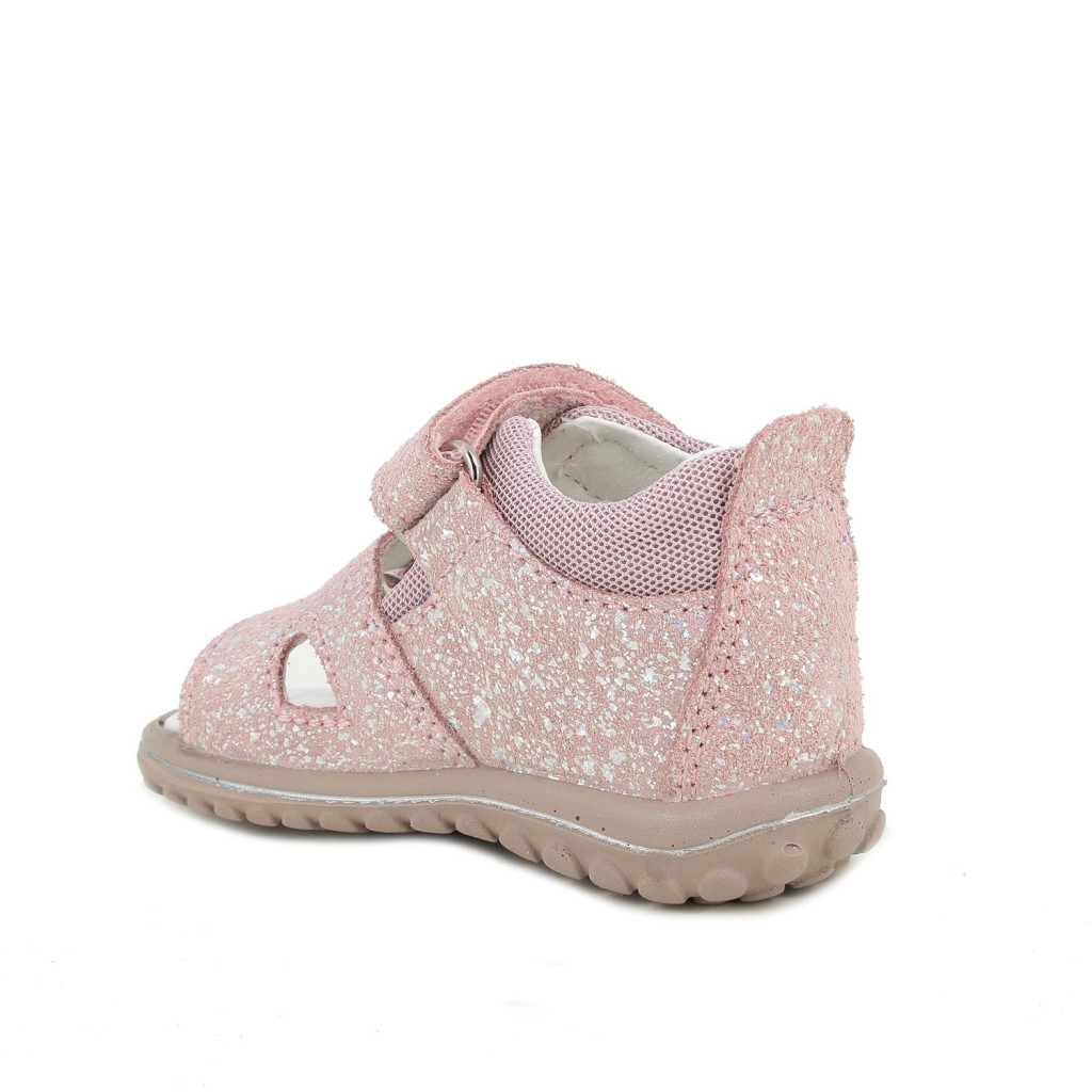Primigi első lépés kislány szandál púder színben, enyhén csillogó felületű. Tépőzárral és 2 csattal van ellátva, a csatok, fűzőlyukak és az összes fémből készült rész nikkelmentes. A sarok zárt, párnázott, hogy maximális támaszt nyújtson a bokának. Pillekönnyű kivitel, rugalmas, csúszásmentes talp. Felső része velúrbőr, a bélés, a talpbetét krómmentes valódi bőrből készült. Elsősorban normál/széles lábfejhez ajánlott.