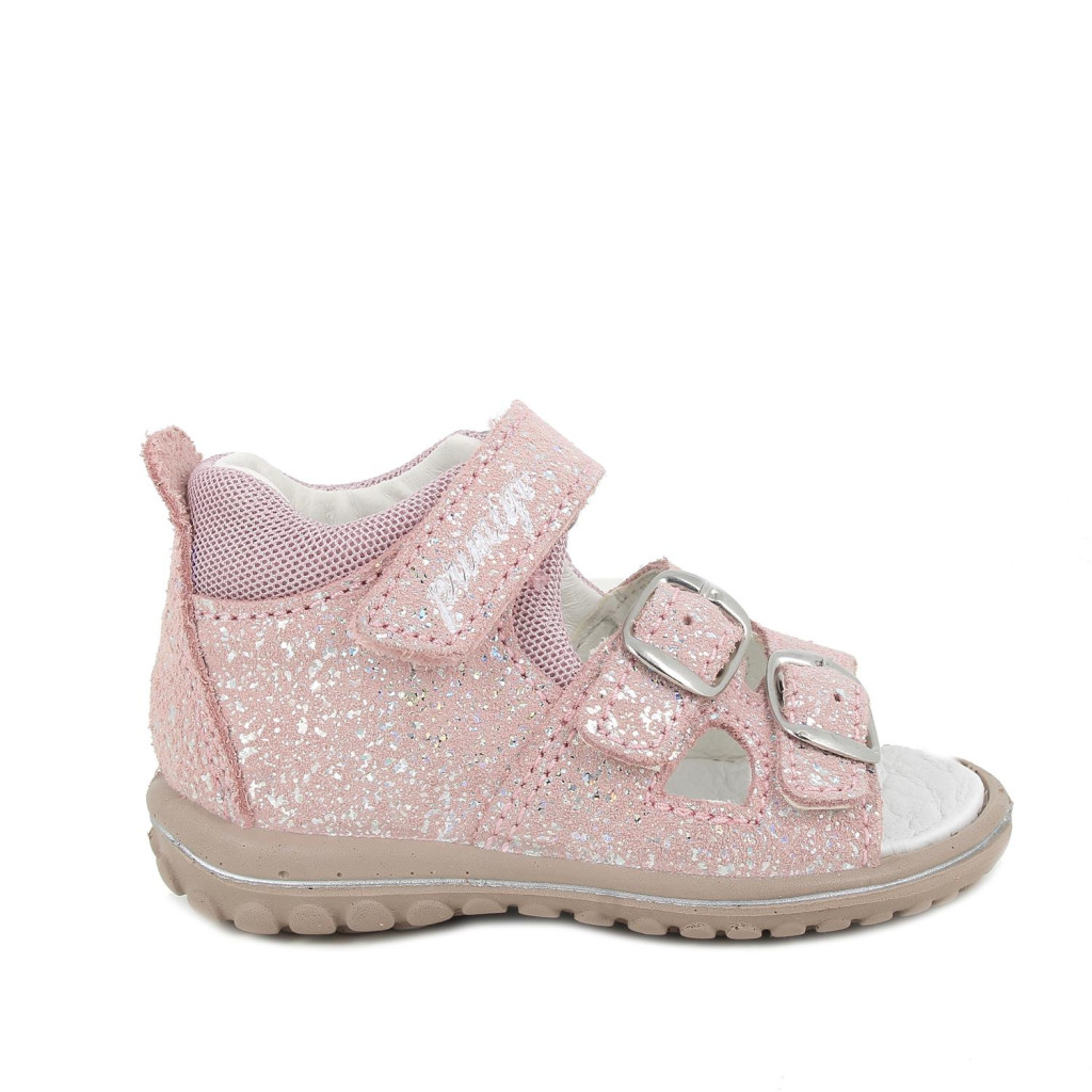 Primigi első lépés kislány szandál púder színben, enyhén csillogó felületű. Tépőzárral és 2 csattal van ellátva, a csatok, fűzőlyukak és az összes fémből készült rész nikkelmentes. A sarok zárt, párnázott, hogy maximális támaszt nyújtson a bokának. Pillekönnyű kivitel, rugalmas, csúszásmentes talp. Felső része velúrbőr, a bélés, a talpbetét krómmentes valódi bőrből készült. Elsősorban normál/széles lábfejhez ajánlott.