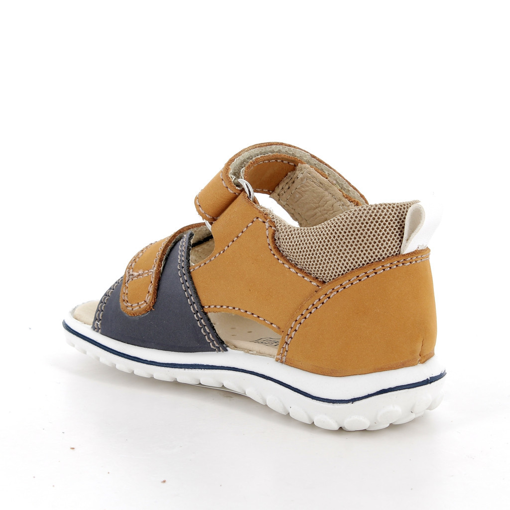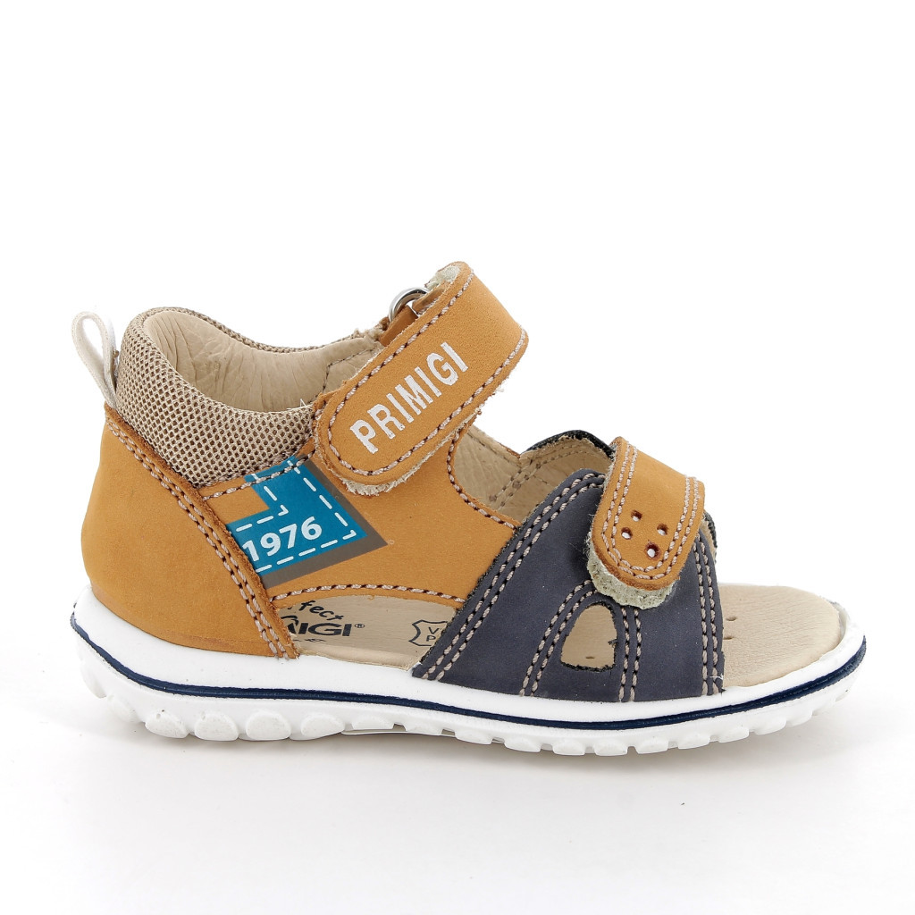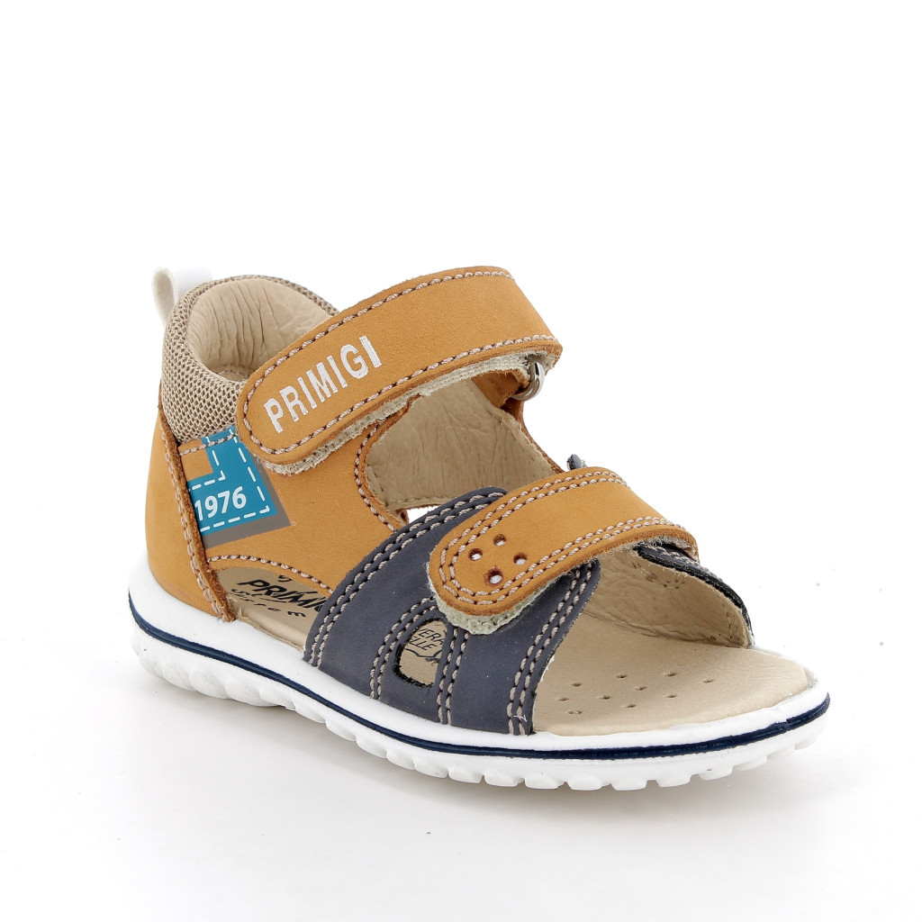 Primigi kisfiú szandál barna és sötétkék színben. Dupla tépőzárral van ellátva, a csatok, fűzőlyukak és az összes fémből készült rész nikkelmentes. A sarok zárt, párnázott, hogy maximális támaszt nyújtson a bokának. Pillekönnyű kivitel, rugalmas, csúszásmentes talp. Felső része bőr és szintetikus bőr, a bélés, a talpbetét krómmentes valódi bőrből készült. Elsősorban normál/széles lábfejhez ajánlott.