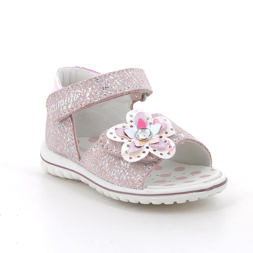Primigi első lépés kislány szandál púder színben, virág mintával, enyhén csillogó felületű. Dupla tépőzárral van ellátva, a csatok, fűzőlyukak és az összes fémből készült rész nikkelmentes. A sarok zárt, párnázott, hogy maximális támaszt nyújtson a bokának. Felső része velúr bőr, a bélés, a talpbetét krómmentes valódi bőrből készült. Elsősorban normál/széles lábfejhez ajánlott.