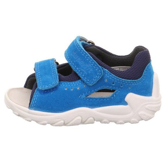 Superfit fiú kék/sötétkék FLOW szandál. Dupla tépőzár a könnyű felvételért. A sarok zárt, párnázott, hogy maximális támaszt nyújtson a bokának. Pillekönnyű kivitel, rugalmas, csúszásmentes talp. Felső része krómmentes velúr bőr és textil, bélésanyaga légáteresztő textil, a talpbetét krómmentes valódi bőrből készült. Elsősorban normál lábfejhez ajánlott.