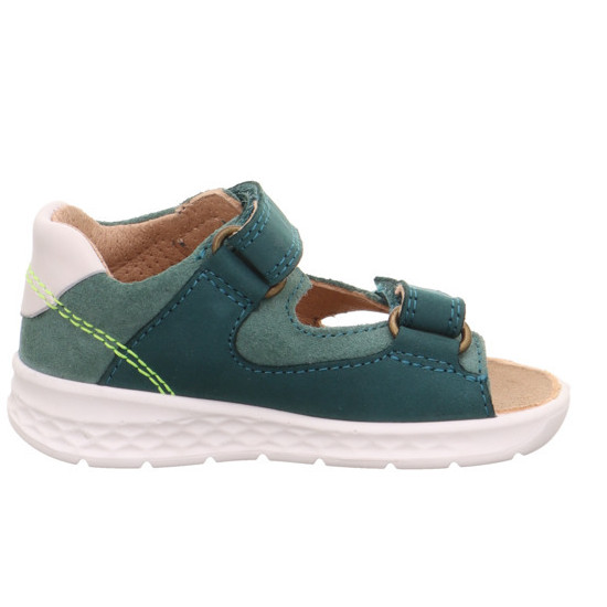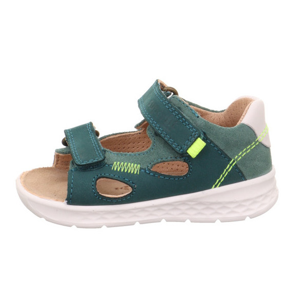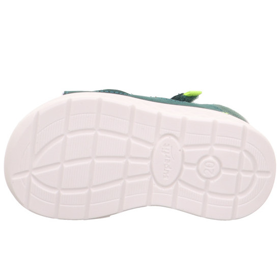 Superfit fiú zöld LAGOON szandál. Dupla tépőzár a könnyű felvételért. A sarok zárt, párnázott, hogy maximális támaszt nyújtson a bokának. Pillekönnyű kivitel, rugalmas, csúszásmentes talp. Felső része krómmentes nubuk bőr, a talpbetét krómmentes valódi bőrből készült. Elsősorban normál lábfejhez ajánlott.