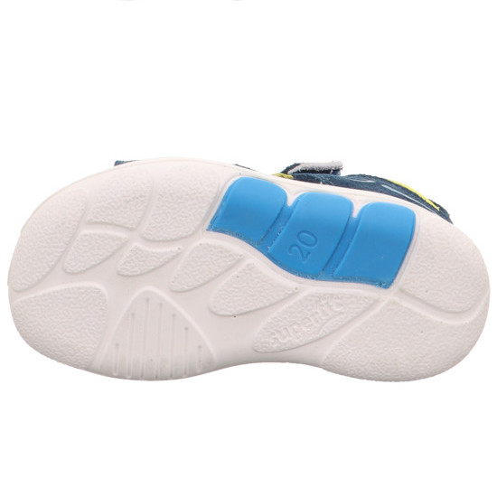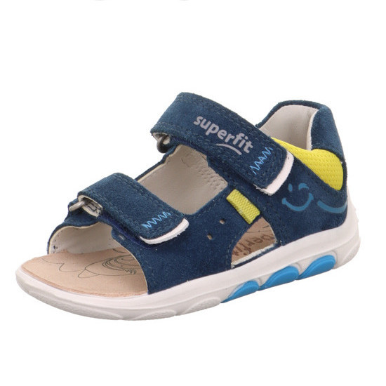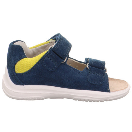 Superfit fiú sötétkék/sárga NINO szandál. Dupla tépőzár a könnyű felvételért. A sarok zárt, párnázott, hogy maximális támaszt nyújtson a bokának. Pillekönnyű kivitel, rugalmas, csúszásmentes talp. Felső része krómmentes velúr bőr és textil, bélésanyaga és a talpbetét krómmentes valódi bőrből készült. Elsősorban normál lábfejhez ajánlott.