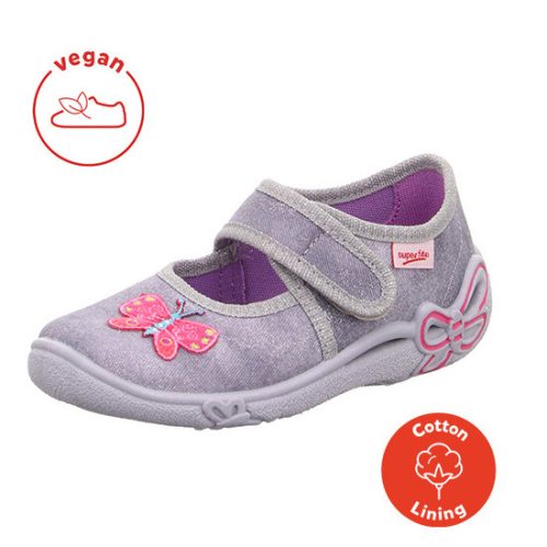 Superfit lány pillangó mintás világosszürke/lila BELINDA vászoncipő. Tartós textilből készült, strapabíró pamutbéléssel. Tépőzáras. Ultrakönnyű kivitel, rugalmas, csúszásmentes talp. A talp alsó részén található kis szellőzőnyílások pedig nagyszerű klímát biztosítanak a lábnak. Elsősorban normál lábfejhez ajánlott.