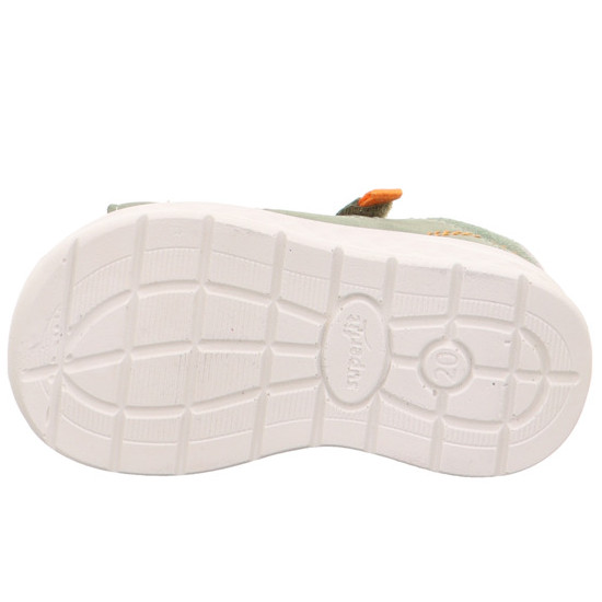 Superfit fiú világoszöld/narancssárga első lépés LAGOON szandál. Dupla tépőzár a könnyű felvételért. A sarok zárt, párnázott, hogy maximális támaszt nyújtson a bokának. Pillekönnyű kivitel, rugalmas, csúszásmentes talp. Felső része krómmentes nubuk bőr, a talpbetét krómmentes valódi bőrből készült. Elsősorban normál lábfejhez ajánlott.