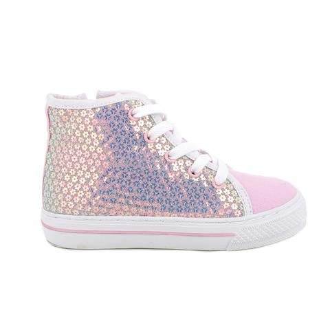 Primigi lány magas szárú szövet tornacipő, rózsaszín színben, rózsaszín flitterekkel. A fűzők mellett praktikus belső cipzárral is rendelkezik a könnyű felvétel érdekében. Felső része textil és flitter, belső bélésanyaga textil. A kivehető bőr talpbetét optimális kényelmet és jó lélegzőképességet biztosít. Nem vízálló. Elsősorban normál/széles lábfejhez ajánlott.