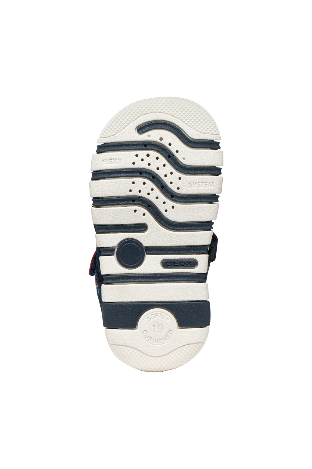 Geox fiú sötétkék-piros IUPIDOO első lépés szandál. Sportos-lezser stílusú, felsőrésze bőrhatású és légáteresztő hálós (mesh) anyagból készült. A zárt, párnázott sarok maximális stabilitást nyújt. A Flexy System talp garantálja a rugalmasságot, míg a Respira™ technológia a szellőzést. Krómmentes bőr talpbetéttel a kényelemért. Könnyű, dupla tépőzáras kivitel, a precíz illeszkedésért és az egyszerű felvételért. Elsősorban normál lábfejhez ajánlott.