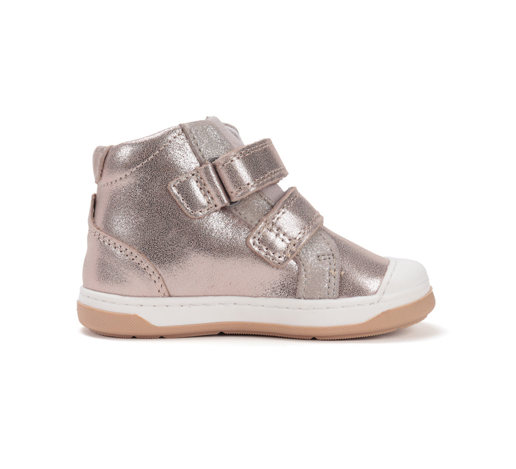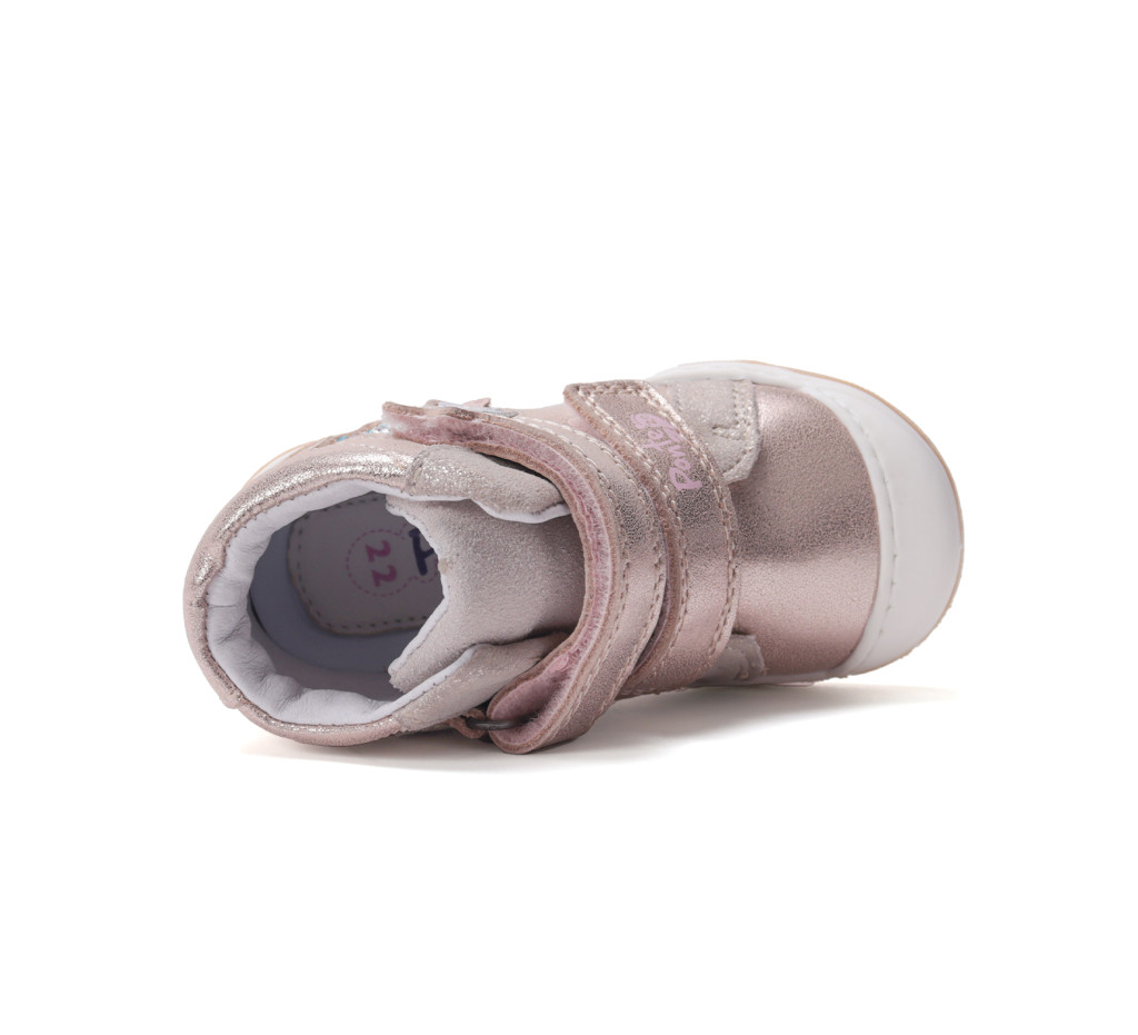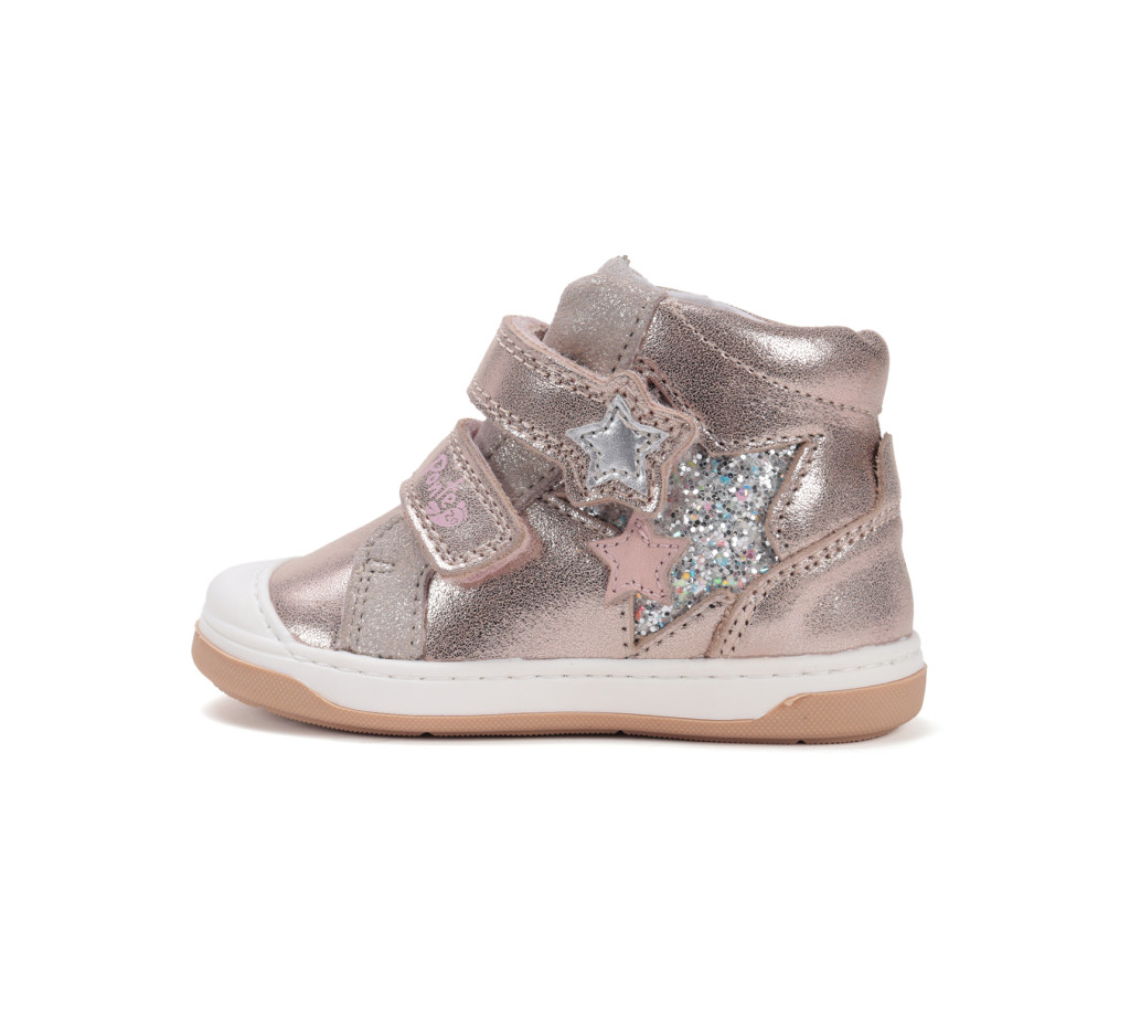 Ponte20 szupinált lány csillagos magas szárú cipő pezsgő színben. Tépőzáras, talpbetéte kivehető, kívül-belül bőr. Vízlepergető. Elsősorban normál/széles lábfejhez ajánlott.