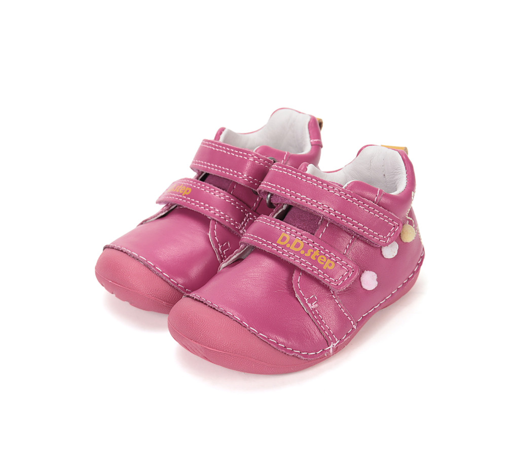 D.D.Step cicás lány zárt átmeneti első lépés cipő pink színben. Extra cipőorr és lábujj védelem. Puha és hajlékony cipőtalp - ideális választás már az első lépésekhez is. Tépőzáras, talpbetéte kivehető. Vízlepergető. Elsősorban normál/keskeny lábfejhez ajánlott.